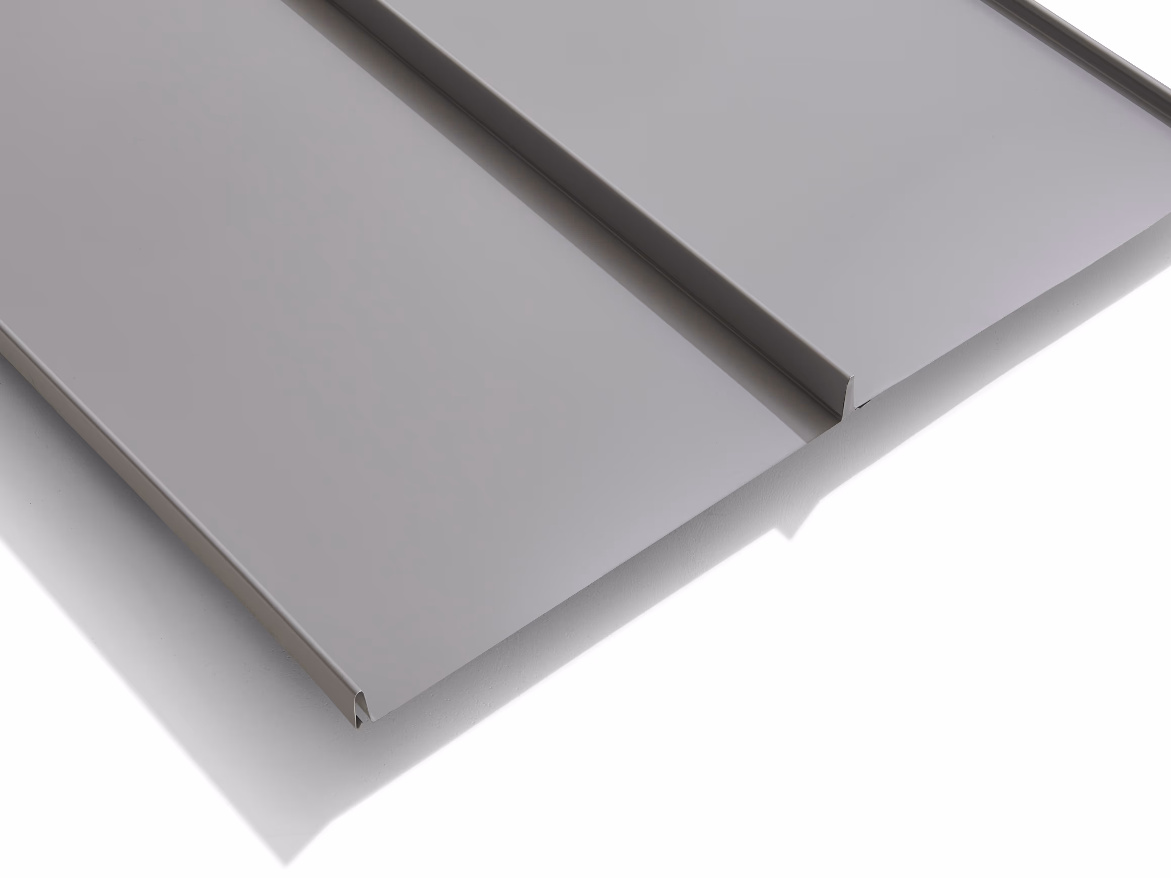 Displays a wider effect of the seam providing a striking appearance in both roofing and cladding situations.
